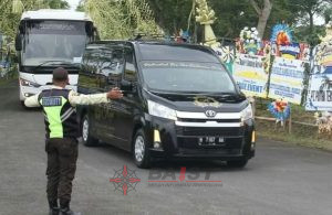 Personel keamanan gabungan disiagakan secara ketat di sepanjang jalur Dukuh Nggodo untuk mengatur lalu lintas kendaraan pelayat agar tidak menggangu aktivitas warga sekitar.